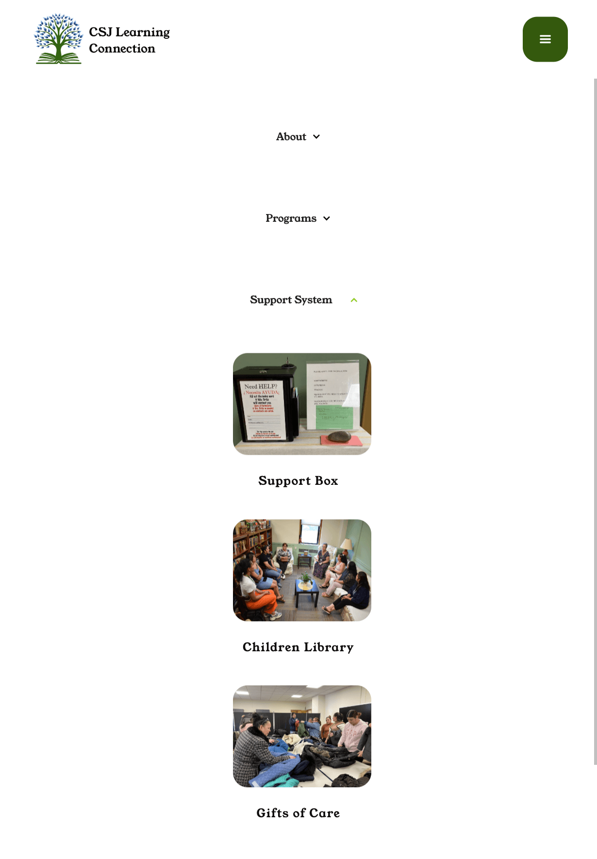 In addition, participants have access to donations and essential resources such as clothing, children’s supplies, books, and other necessities that help support them as they navigate life in the U.S. CSJ Learning Connection also offers “Support Box” meetings, where women can talk about the challenges they face at home and at work and seek counseling. These sessions allow them to decompress, share their feelings, and feel supported in a safe and welcoming environment.