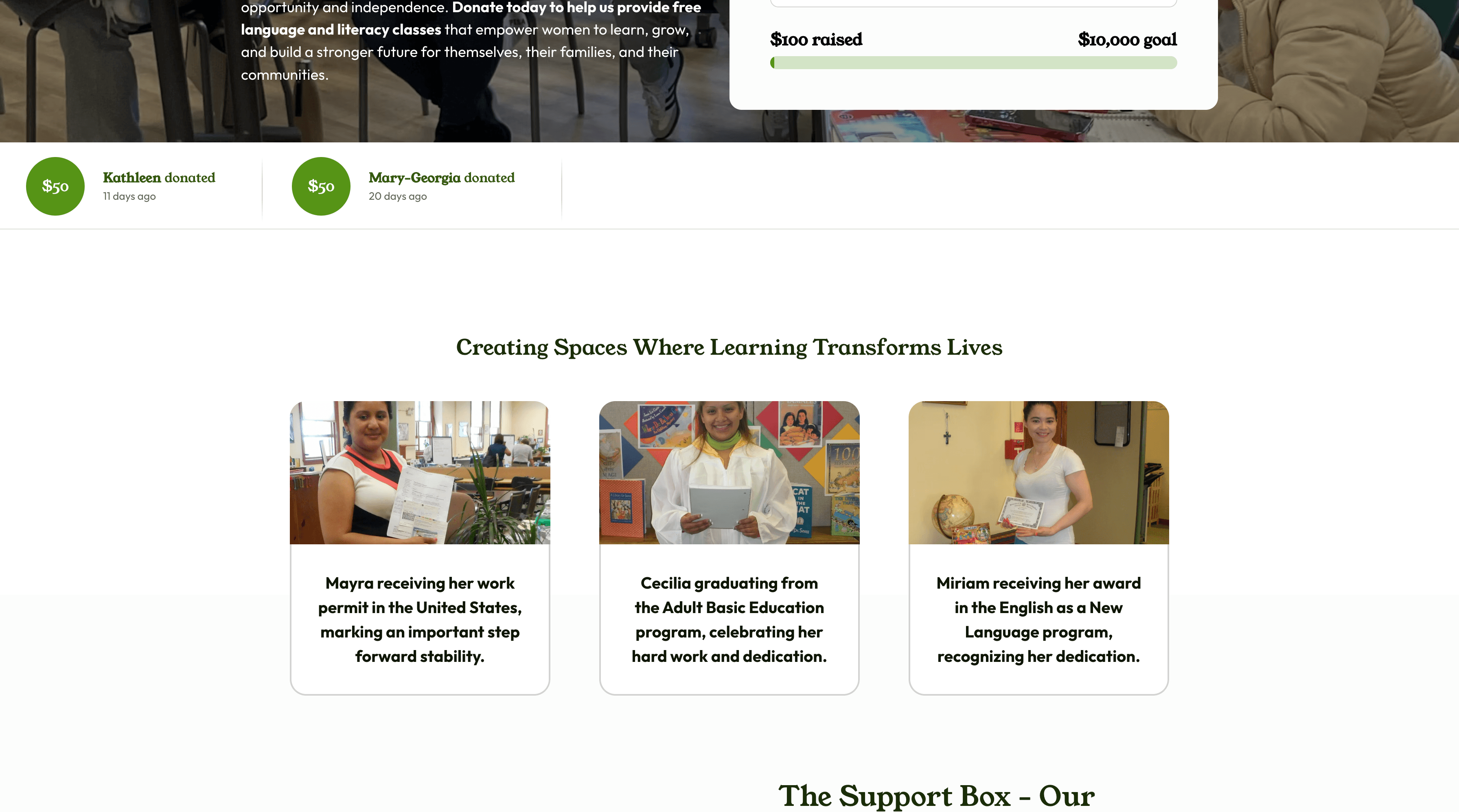 Designing the website required honoring this humanity and warmth - capturing the beauty of the program for donors while ensuring the site clearly serves women looking for practical information about schedules, classes, curriculum, and the ability to read the site in Spanish. Accessibility, clarity, and emotional resonance guided every design decision.