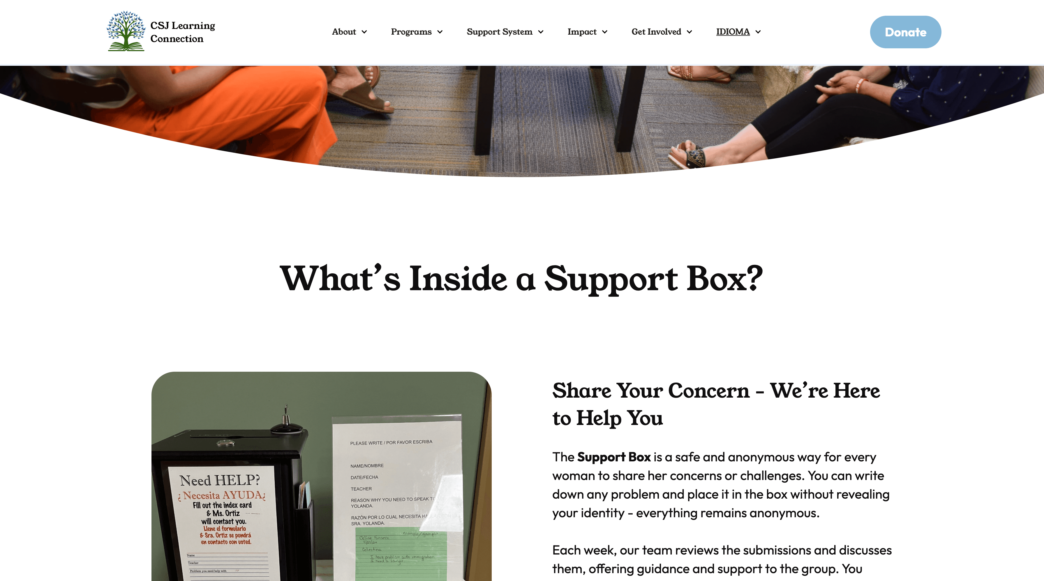 Another major challenge was presenting the depth and scale of the organization without overwhelming users. CSJ Learning Connection has been in existence for over 31 years, with a long - standing impact on thousands of women and families. Communicating this history - and the trust built over decades - was essential.